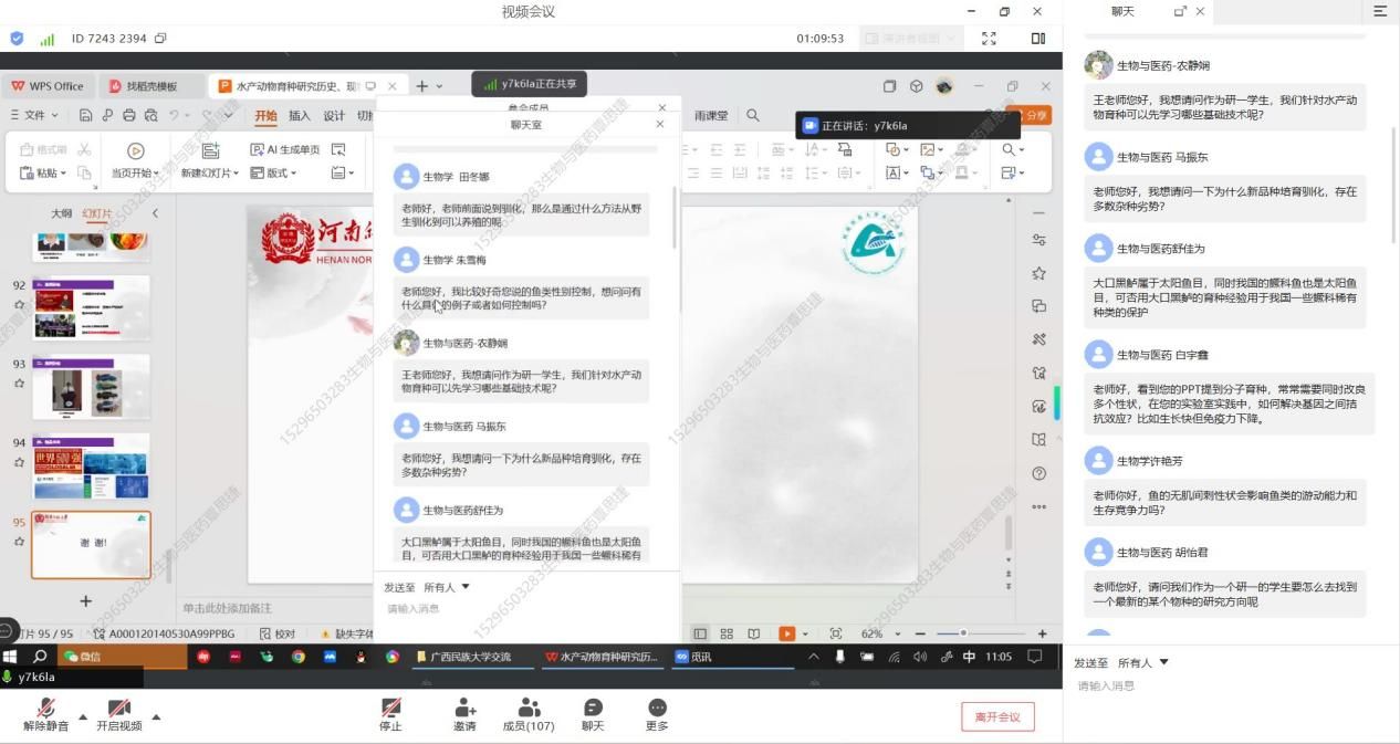 为了帮助2025级新入学研究生尽快融入科研学习生活,广西民族大学海洋与生物技术学院于8月2日至29日期间举办了共计9场的暑期学术大讲堂系列学术报告,此次系列学术报告特邀西南大学张勇教授、湖北工业大学刘晓楠教授、中国农业科学院上海兽医研究所邱亚峰教授、集美大学林茂教授、中国科学院天津工业生物技术研究所王钦宏研究员、广西区人民医院宋健研究员、罗洪林研究员、河南师范大学王磊副教授、浙江工业大学柯志刚副教授等国内生物相关领域专家学者主讲。学院师生积极与专家进行线上学术交流,展现出浓厚的学术氛围和严谨的治学态度。