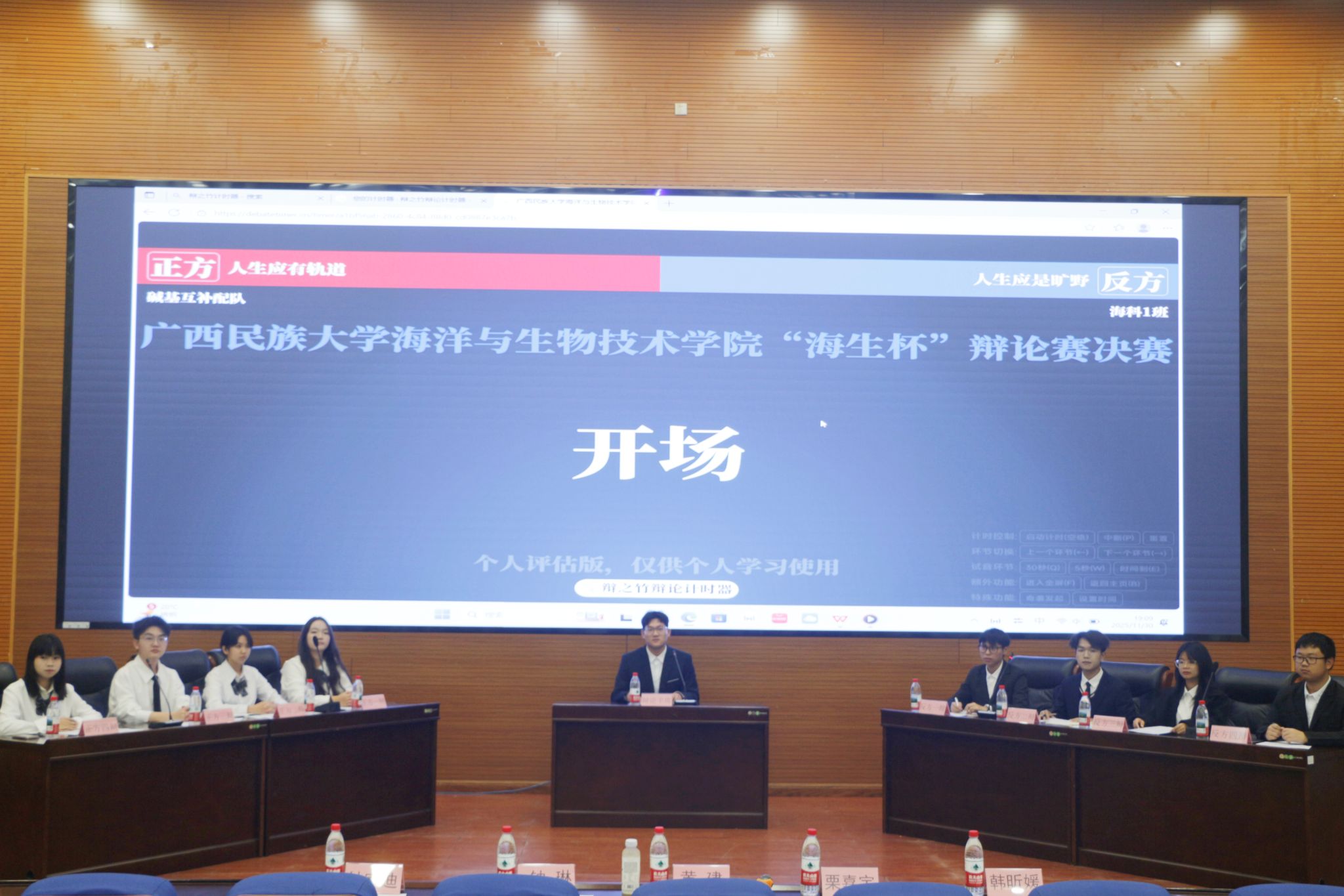 为进一步丰富校园文化生活,切实锻炼学生逻辑思维与语言表达能力,11月30日晚,我院“海生杯”辩论赛决赛在明德楼101报告厅正式拉开帷幕。此次比赛由海洋与生物技术学院黄健、钟琳,化学化工学院栗嘉宇,法学院钟宇迪,东南亚语言文化学院韩昕媛担任评委,2025级全体学生观看本次比赛。