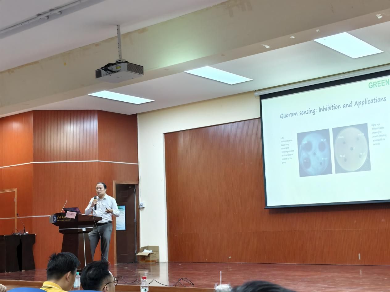 报告结束后,范世海教授与在场师生围绕SBES工程放大、电极材料成本优化、长期运行稳定性及与益生菌联合应用等议题进行了热烈交流。广西民族大学海洋与生物技术学院负责人表示,范教授团队的工作真正实现了“把基础研究写在养殖池塘里”,为学院开展应用导向的水产养殖环境微生物修复研究提供了宝贵经验和合作契机。未来双方将在跨境水产养殖环境治理、微生物电化学技术研发等方面进一步深化合作。